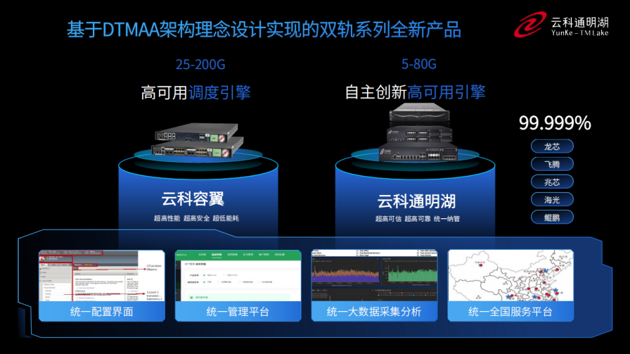 同时,为了更好的适配双轨超高可用架构,bti必一体育推出了容翼系列和云科通明湖信创系列两大应用交付控制器产品。
